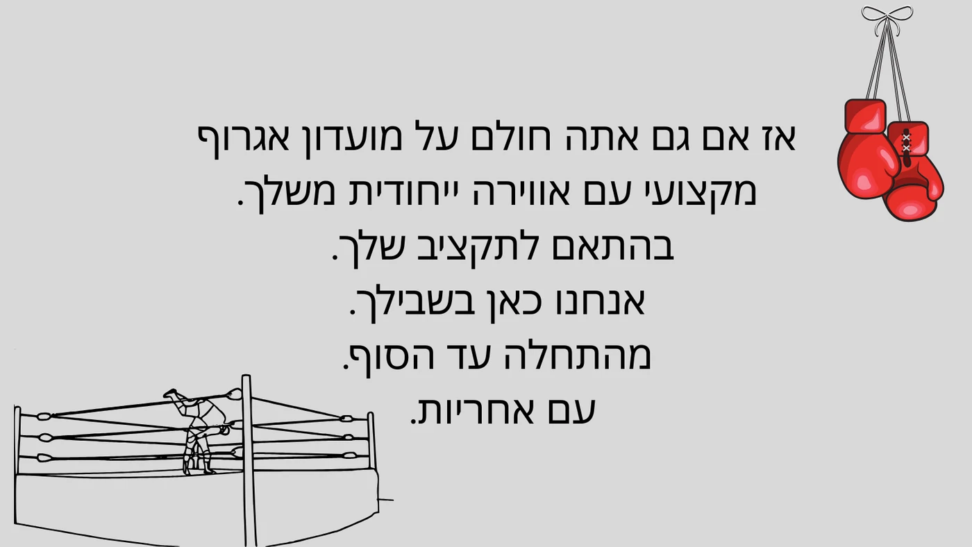תוך 30 יום אנחנו מקימים עבורך מועדון לחימה עם המיתוג שלך!
